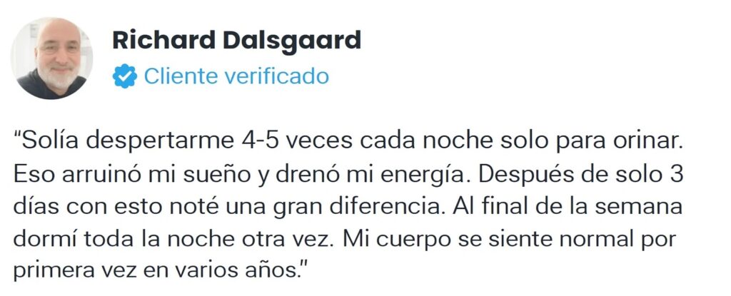Pero cuando comencé a usar esto, todo cambió. Ya después de unos días noté la diferencia. Pude dormir, recuperé mi energía y ya no tenía que planificar mi día alrededor de los baños. Mi confianza regresó y comencé a vivir nuevamente. Esto no solo ayudó a mi próstata, me devolvió mi vida.”